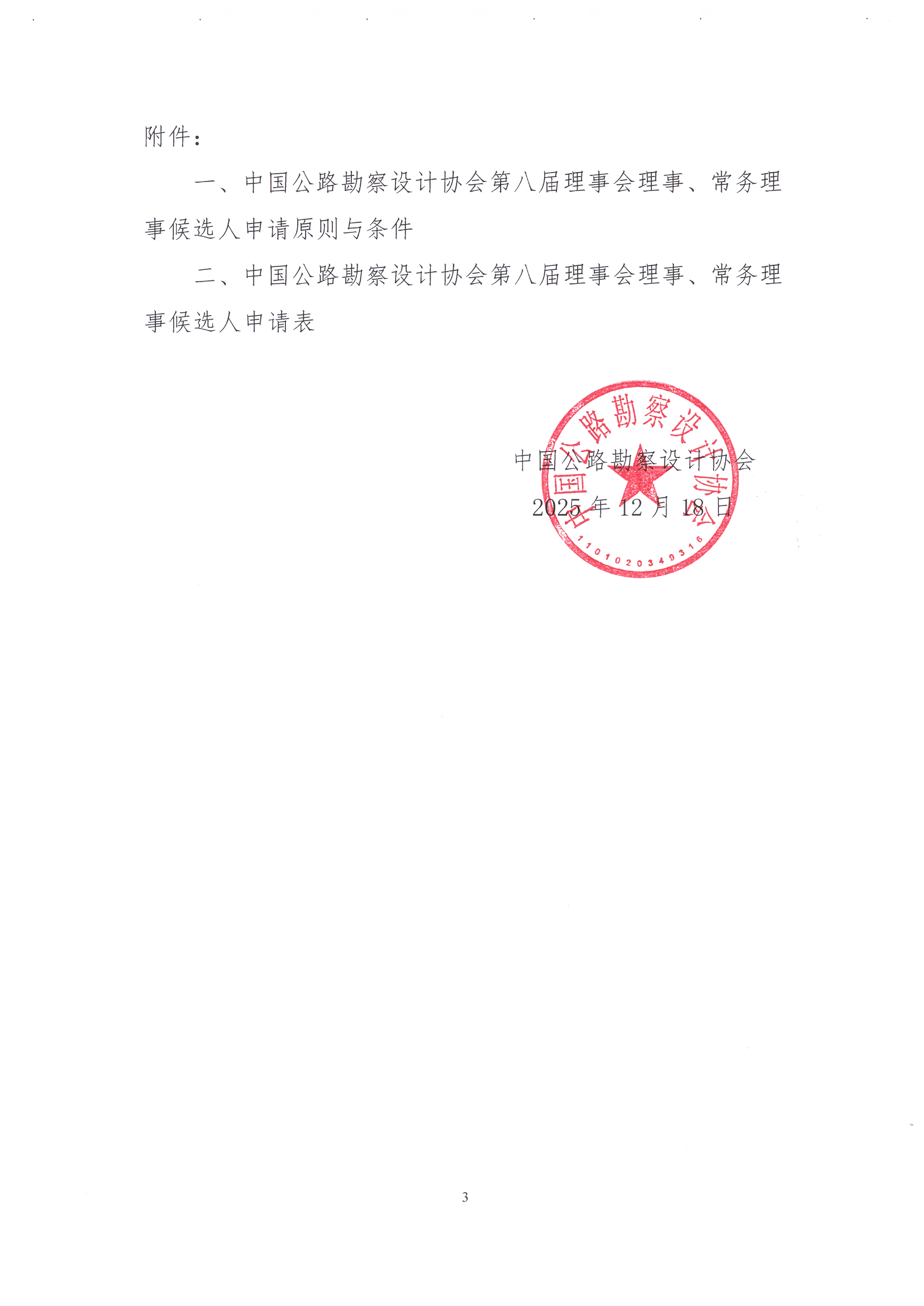 关于征集中国公路勘察设计协会第八届理事会理事、常务理事候选人的通知