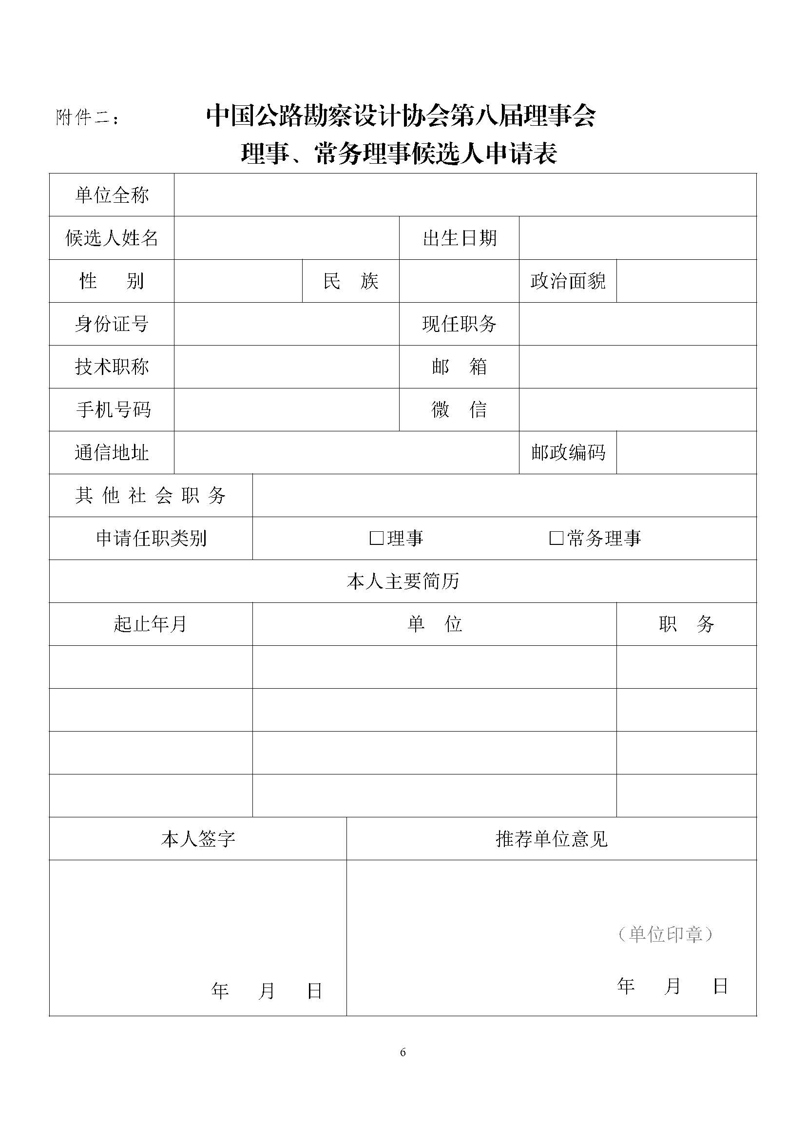 附件二 中国公路勘察设计协会第八届理事会理事、常务理事候选人申请表.docx